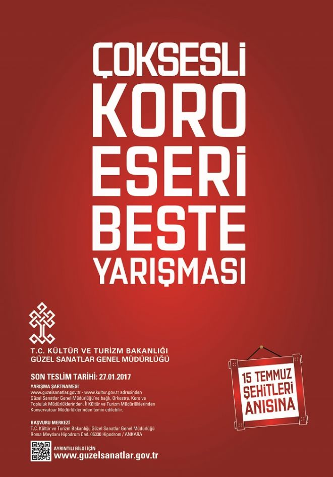 15 Temmuz Şehitlerimiz Anısına düzenlenen “Çoksesli Koro İçin Beste Yarışması”, 8 yapıta verilecek toplam 35.000.-TL tutarındaki ödülleri ile Kültür ve Turizm Bakanlığınca bu alanda düzenlenen ilk ödüllü yarışma olma özelliği taşıyor.