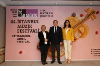 44. İstanbul Müzik Festivali basın toplantısına İKSV Yönetim Kurulu Başkanı Bülent Eczacıbaşı , İstanbul Müzik Festivali Direktörü Yeşim Gürer Oymak ve festival sponsoru Elginkan Topluluğu İcra Meclisi Başkanı ve E.C.A. Presdöküm Sanayii A.Ş. Yönetim Kurulu Başkanı Gaye Akçen katıldı.