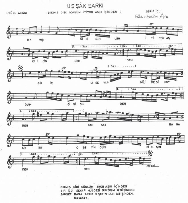 (Şarkı notası aşağıdadır - "Bıkmış gibi gönlüm" )