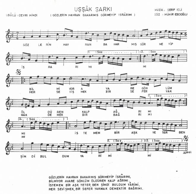 (Şarkı notası aşağıdadır - "Gözlerin hayran bakarmış" )