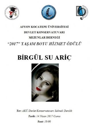 Afyon Kocatepe Üniversitesi, Devlet Konservatuarı Mezunlar Derneği Yaşam Boyu Hizmet Ödülü daha önceki yıllarda Yalçın Tura (2014), Ruhi Ayangil (2015) Musa Eroğlu'ya (2016) verilmişti.