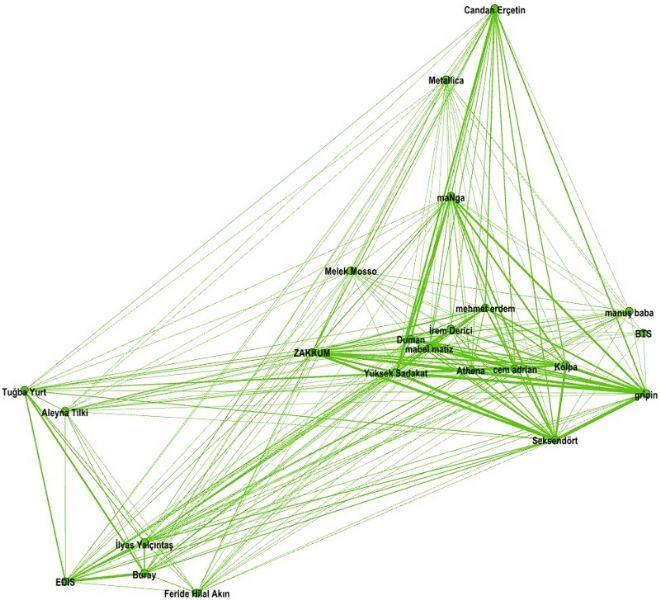 Türkiye’de en çok dinlenilen grup ve sanatçıların yakınlık haritası