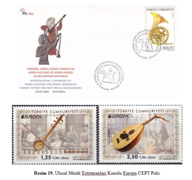 1985 yılında "Avrupa Müzik Yılı" konulu anma serisi (Europa CEPT) kapsamında Türk musikisi bestekâr ve eğitimcilerinden Ulvi Cemal Erkin ve Mithat Fenmen'in resimlerine ve 2014 yılında "Ulusal Müzik Estrümanları" ortak teması altında ud ve kabak kemane çalgılarının resimlerine yer verilmiştir.