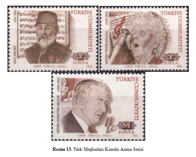 1993 yılında Türk Meşhurları serisinde yine üç musikişinasa yer verilmiştir. Bu musikişinaslar Hacı Arif Bey, Neyzen Tevfik Kolaylı ve Münir Nurettin Selçuk'tur (Resim 13).