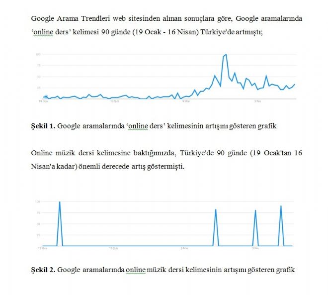 Şekil 2. Google aramalarında online müzik dersi kelimesinin artışını gösteren grafik BKZ Aşağıda…